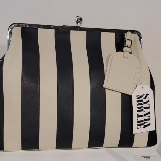 Embossed Premium Leather Kisslock Closure Fannie Bag