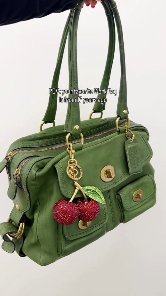 Vintage Cylinder Leather Shoulder Bag with Side Zipper Pockets