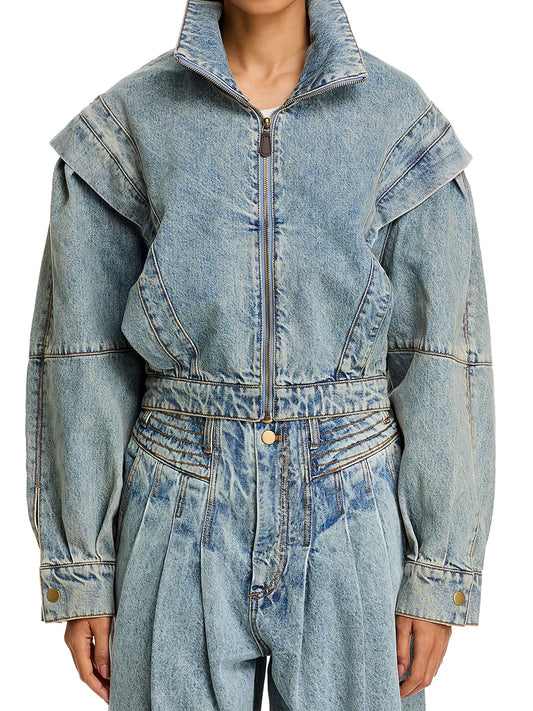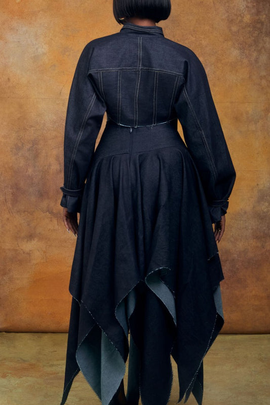 Cropped Denim Jacket & Asymmetrical Skirt Set