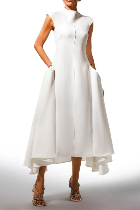 Fashion Elegant Half-high Collar Cape Pleated Dress