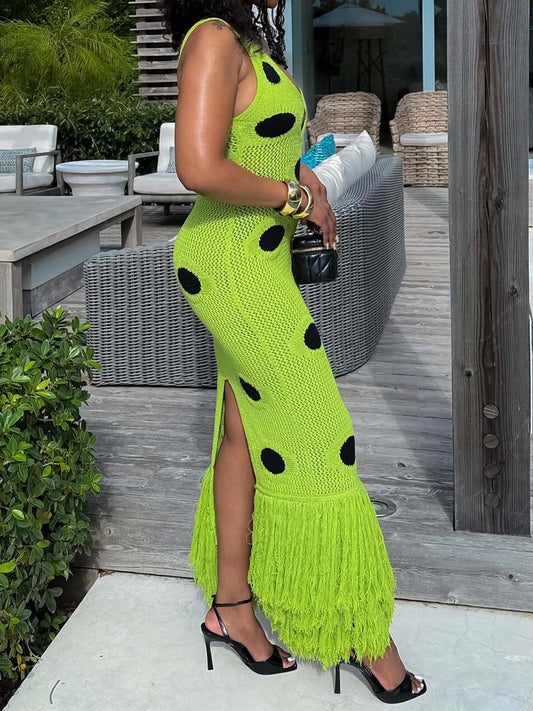 Scoop Neck Rose Appliqué Ruffle Hem Dress