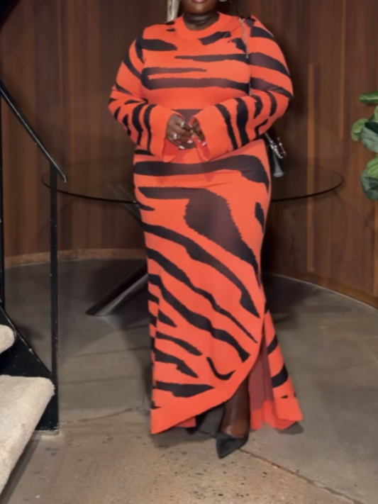Patchwork Printed Sequined Flare Sleeve Maxi Dress