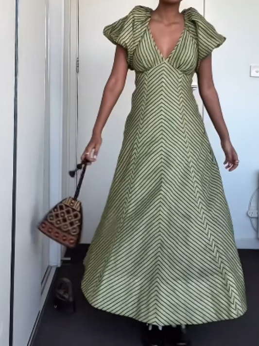 Maxi Flared Shirt Dress in Black & White Diamond Stripes