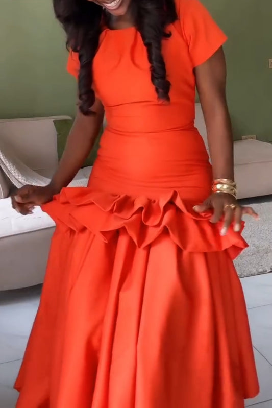 Square Neck Ruffle Tiered Maxi Dress