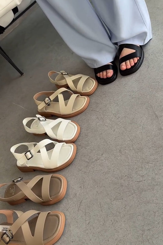 Minimalist Open-Toe Slingback Sandals – Elegant Beige Comfort Flats