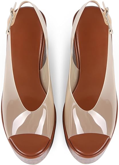 Cork Wedges Heels for Women Platform Sandals Clear Jelly Shoes Chunky Heels