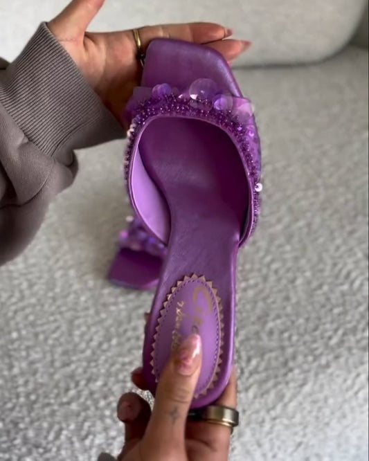 Round-toe Sandals Cut-out Rhinestone Sparkle Flats
