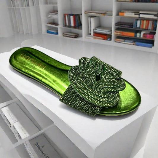 Rhinestone Flat Slide Sandals – Sparkly Slip-On Summer Shoes in Multiple Colors