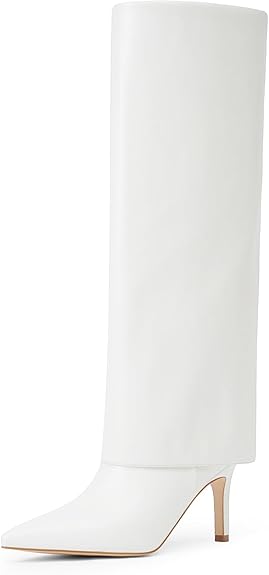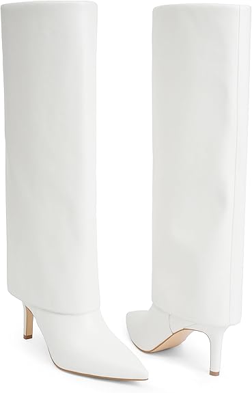 Knee High Boots Women Fold Over Pointed Toe Stiletto Boots