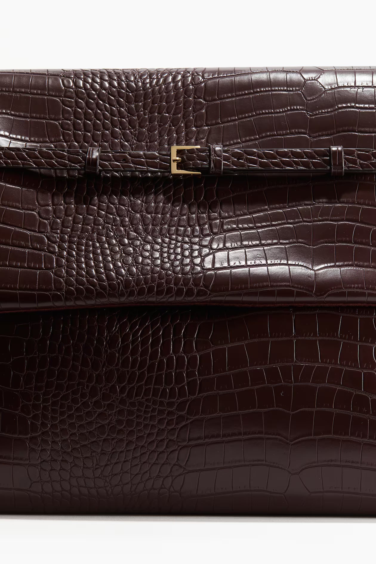 Flap with a concealed magnetic fastener and an adjustable strap with a metal buckle on the front. One open inner compartment. Lined. Depth 20 cm. Height 33 cm. Width 52 cm.