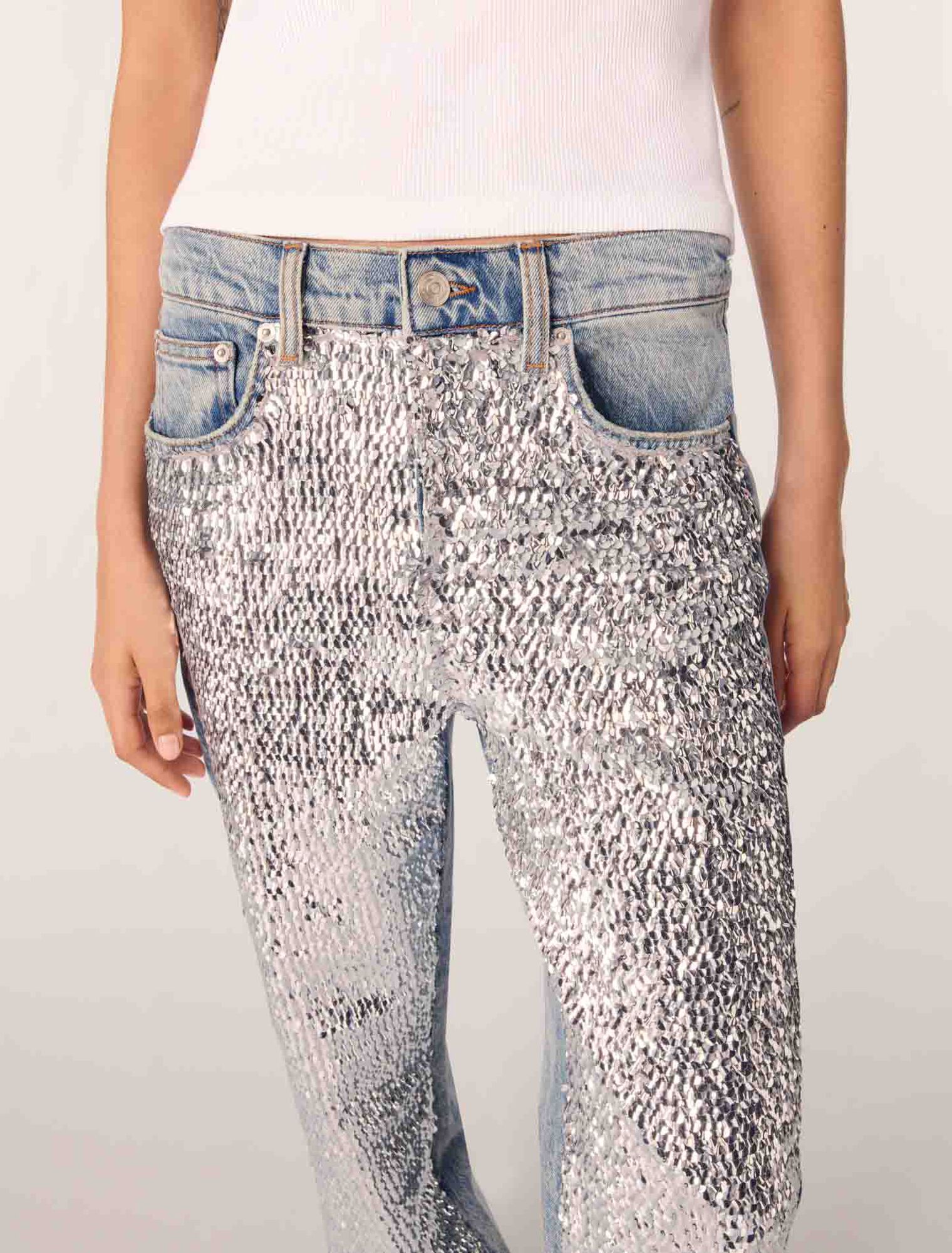Straight-leg jeansSilver sequin inserts