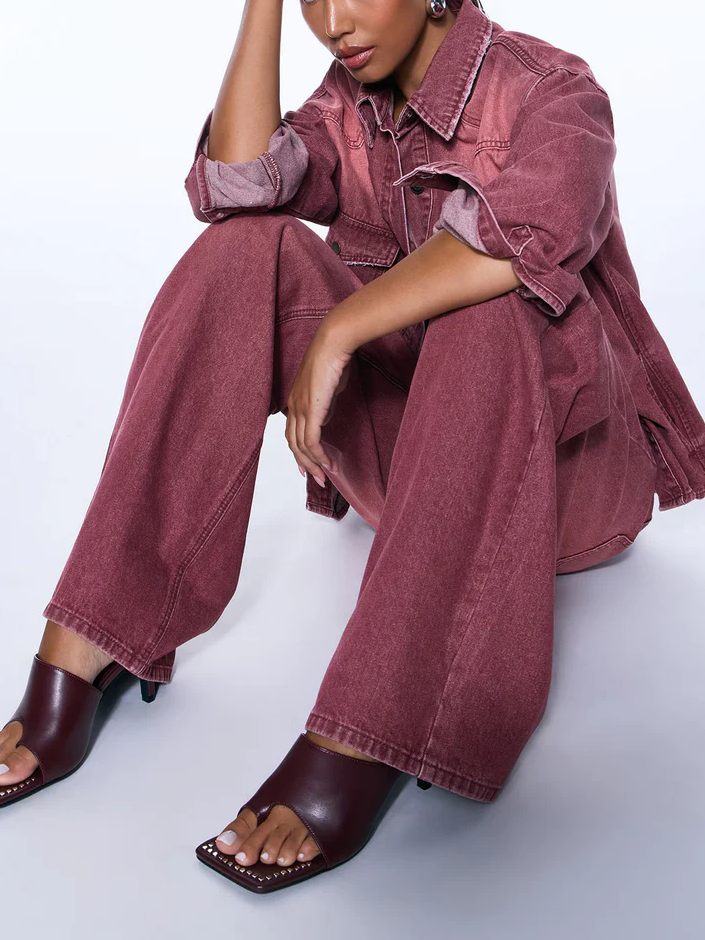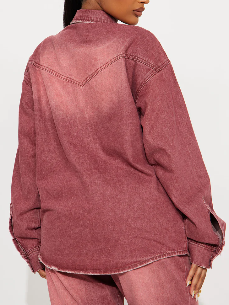 Slow Fade Denim Shacket & Straight Leg Jeans Set