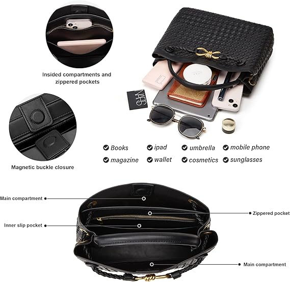Woven Tote Bag Womens Purse: Vegan Leather Shoulder Handbags